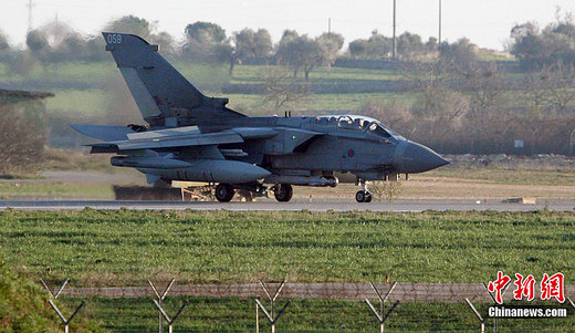 3月23日,意大利巴里附近,英國皇家空軍女飛行員準備駕駛“臺風”戰斗機從焦亞德爾山口空軍基地起飛。美國和其他西方國家的部隊近日在多個意大利空軍基地集結,準備參與對利比亞的聯合軍事行動。