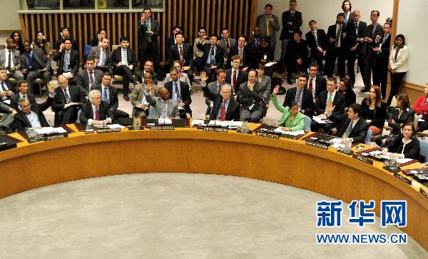 3月17日,在美國紐約聯(lián)合國總部,部分安理會理事國代表舉手投贊成票。當日,聯(lián)合國安理會通過決議,決定在利比亞設立禁飛區(qū)。新華社記者申宏攝