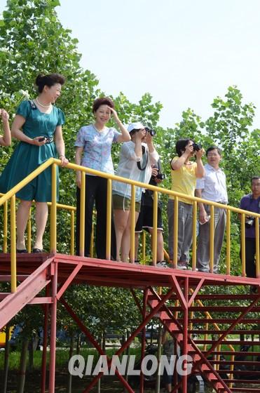 五里明鎮整鎮推進規模經營暨玉米大壟種植示范區總面積66.7平方公里(10萬畝),核心區6.67平方公里(1萬畝),是全國首批整鄉整建制推進糧食高產創建示范區,畝產量木標1000公斤,畝效益目標1100元。該園區到了設施裝備、經營合作、技術措施三個全國最先進。2009年6月,胡錦濤總書記到此視察,稱贊他們通過發展專業合作社、創建優質高產糧田,走出了一條提高糧食綜合生產能力的成功路子。 圖為第六屆全國網絡媒體行采訪團成員在五里明鎮整鎮推進規模經營暨玉米大壟種植示范區采訪。(千龍網滕祖敏 攝)