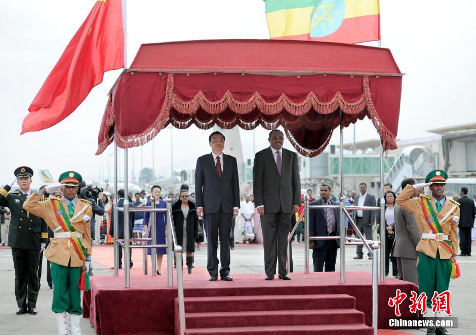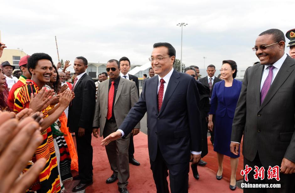 當地時間5月6日下午,中國國務院總理李克強結束對埃塞俄比亞和非盟總部的訪問,乘專機離開亞的斯亞貝巴飛赴此訪非洲的第二站尼日利亞。埃塞總理海爾馬里亞姆和夫人到機場歡送,并舉行了歡送儀式。身著民族服裝的當地民眾載歌載舞歡送中國貴賓。中新社記者 劉震 攝