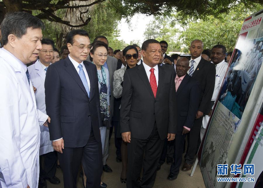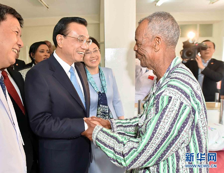 5月6日,中國國務院總理李克強與埃塞俄比亞總統穆拉圖一同來到亞的斯亞貝巴阿勒塔醫院,看望受益于中國免費白內障手術“光明行”活動的埃塞俄比亞患者。新華社記者謝環馳攝 圖片來源:新華網