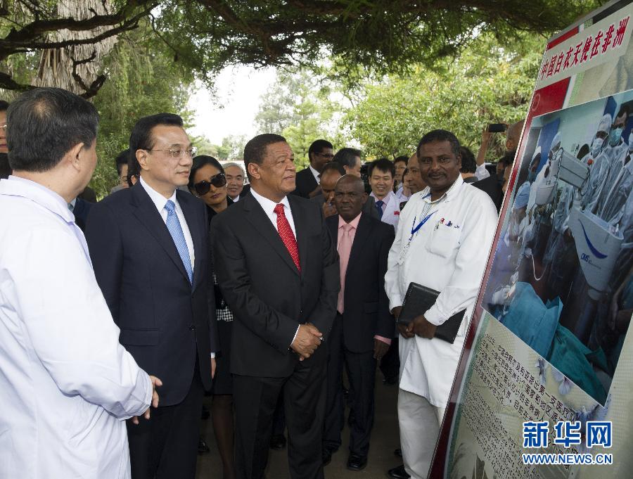 5月6日,中國國務院總理李克強與埃塞俄比亞總統穆拉圖一同來到亞的斯亞貝巴阿勒塔醫院,看望受益于中國免費白內障手術“光明行”活動的埃塞俄比亞患者。新華社記者李濤攝 圖片來源:新華網