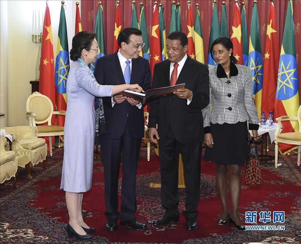 5月6日,中國國務(wù)院總理李克強(qiáng)在亞的斯亞貝巴國家宮會見埃塞俄比亞總統(tǒng)穆拉圖。 李克強(qiáng)總理夫人程虹、穆拉圖總統(tǒng)夫人梅阿扎參加會見。這是會見結(jié)束后,李克強(qiáng)總理向穆拉圖總統(tǒng)贈送介紹北京大學(xué)的畫冊。穆拉圖總統(tǒng)年輕時曾在北京大學(xué)留學(xué)。 新華社記者李學(xué)仁攝"