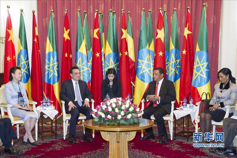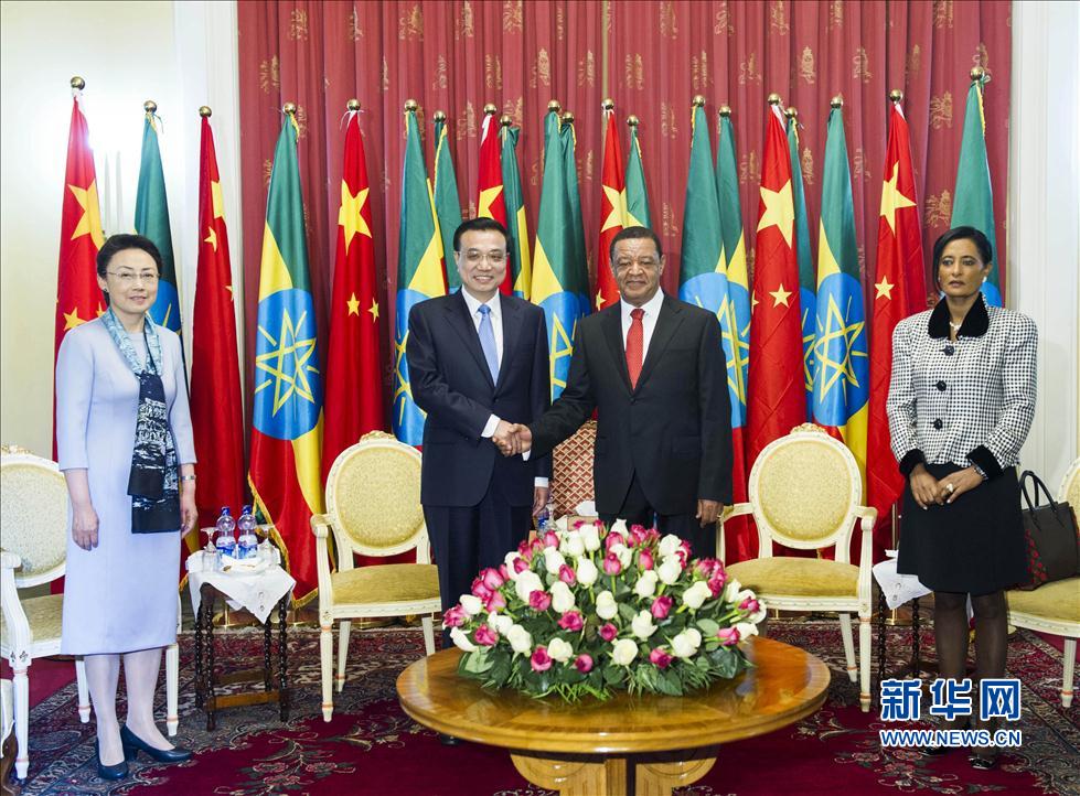 5月6日,中國國務(wù)院總理李克強(qiáng)在亞的斯亞貝巴國家宮會見埃塞俄比亞總統(tǒng)穆拉圖。 李克強(qiáng)總理夫人程虹、穆拉圖總統(tǒng)夫人梅阿扎參加會見。新華社記者王曄攝"