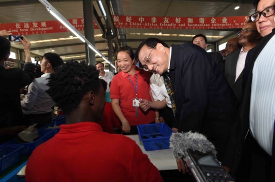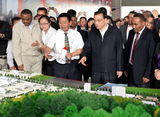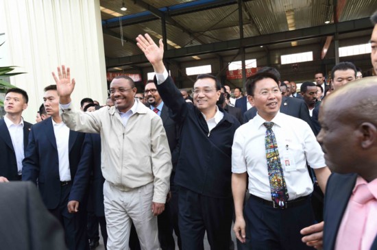 5月5日,國務院總理李克強在埃塞俄比亞總理海爾馬裡亞姆陪同下參觀東方工業園。新華社記者 李學仁 攝