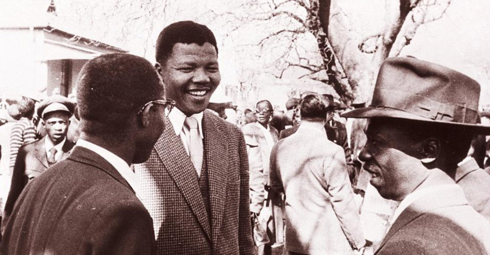 在約翰內(nèi)斯堡,曼德拉先后干過金礦保安、律師事務(wù)所學(xué)徒、律師,并目睹了南非種族隔離制度的野蠻和黑暗。他義無反顧地投身于南非人民的解放事業(yè)。早在1944年,曼德拉參加了"非洲人國民大會"(簡稱非國大),并參與組建了"非洲人國民大會青年團(tuán)"。他先后擔(dān)任過德蘭士瓦省非洲人國民大會主席、全國非洲人國民大會第一副主席、全國非洲人國民大會主席。圖為1950年晚些時候,曼德拉與兩名"叛國罪"同犯聊天。