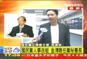 國民黨文傳會主委李建榮:“年底之前,有一個重要的人事案,為了因應黨內的工作需要,本黨副主席兼中央委員會秘書長詹春柏同志,免兼秘書長職,并改任專職副主席,所以原秘書長職缺,通過由金溥聰同志擔任。”