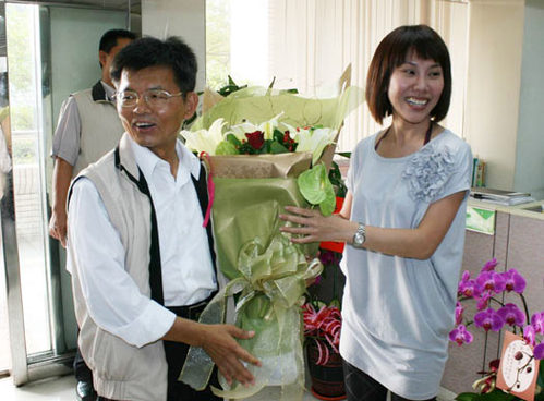 高雄縣長楊秋興出院 員工獻花歡迎(圖)