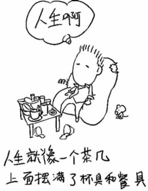 原版:人生就像一個(gè)茶幾,上面擺滿了杯具。