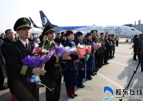 煙臺-臺北直航定期航班首航開通儀式在煙臺國際機場隆重舉行