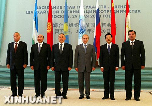 這是2003年5月29日,出席上海合作組織成員國元首第三次會議的6國元首在莫斯科合影。新華社發