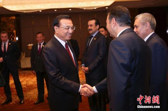 12月14日晚,中國國務院總理李克強在河南鄭州為來華出席上海合作組織成員國政府首腦(總理)理事會第十四次會議的各國領導人舉行歡迎宴會。宴會前,李克強同與會各國領導人共同參觀河南省與上合組織成員國合作成果展,詳細聽取河南省負責人介紹有關情況,并同各國領導人進行了親切交流。 中新社記者 劉震 攝