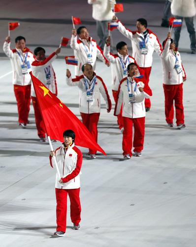 中國代表團(tuán)入場(chǎng),旗手是花樣滑冰老將佟健,他已經(jīng)是第四次參加冬奧會(huì)。