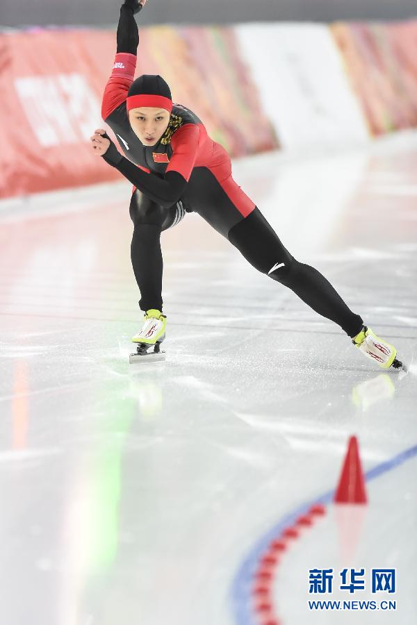 2月11日,張虹在比賽中。當日,在索契冬奧會速度滑冰女子500米比賽中,中國選手張虹以75秒58的成績獲得第四名。新華社記者王昊飛攝