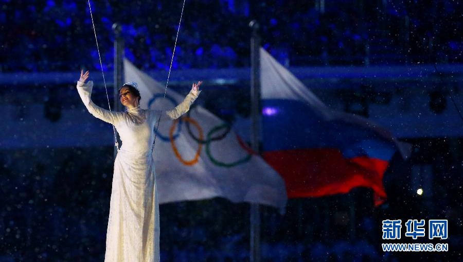 2月23日,演員在閉幕式上表演。當日,第22屆冬奧會閉幕式在菲施特奧林匹克體育場舉行。 新華社記者龔兵攝
