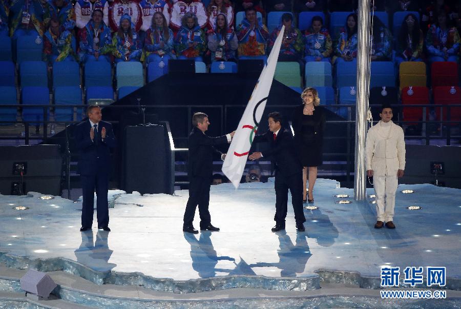 2月23日,2018年冬奧會舉辦城市平昌市市長李石萊(左三)從國際奧委會主席巴赫(左二)手中接過國際奧委會會旗。當(dāng)日,第22屆冬奧會閉幕式在菲施特奧林匹克體育場舉行。 新華社記者王麗莉攝