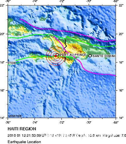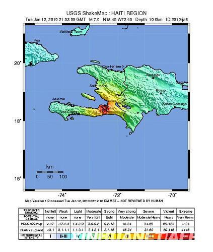美國地質勘探局先前初步測定地震級別為7.3級,震中位于距海地首都太子港16公里處,震源深度為10公里。地震不久后又連續發生兩次余震,分別為里氏5.9和5.5級。多米尼加震感明顯,建筑物發生劇烈搖晃。