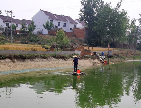 在潁上八里河風景區(qū)北岸看到,一口口魚塘縱橫交錯,裝有太陽能路燈的柏油路一頭連著魚塘,一頭連著社區(qū)入口處的水泥路……這里是潁上縣唯一由漁民組成的社區(qū)八里河鎮(zhèn)漁民社區(qū)。據(jù)介紹,當?shù)貪O民都是按照魚的生長階段,分開養(yǎng)殖魚苗、二齡魚、成魚。漁民社區(qū)主任田孝忠說,除了飼養(yǎng)青草鰱鳙四大家魚,當?shù)匾灿楷F(xiàn)出一批飼養(yǎng)甲魚、鱖魚、黑魚等高附加值水產(chǎn)的致富能手。