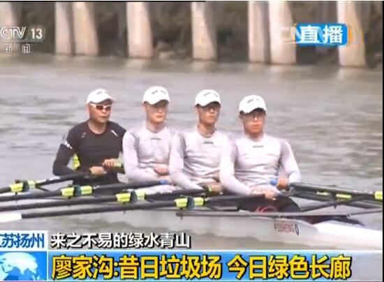 位于江蘇揚州生態(tài)科技新城的廖家溝片區(qū)河網密布,小島星落鑲嵌,形成綠水繞綠島的美麗景觀。這是一片面積達10.7平方公里的綠色濕地,區(qū)域內現(xiàn)有258種植物,81種鳥類,67種魚類。由于景色優(yōu)美,現(xiàn)在廖家溝片區(qū)成為了國際賽艇項目的比賽地之一,這會兒正在河道上訓練的是一支來自揚州本土的賽艇隊伍,他們正在為今年9月份即將在此舉行的一項國際賽事做準備。