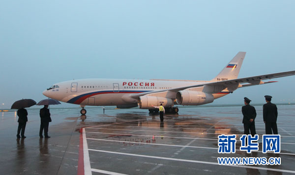 5月20日,俄羅斯聯邦總統普京抵達上海,開始對中國進行為期兩天的國事訪問并出席在上海舉行的亞洲相互協作與信任措施會議第四次峰會。這是普京乘坐的專機抵達上海虹橋國際機場。 新華社記者 裴鑫 攝