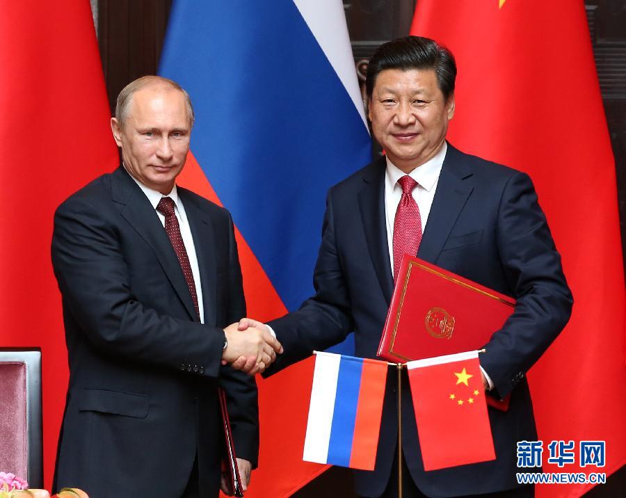 5月20日,國家主席習近平在上海同俄羅斯總統普京舉行會談。這是會談后,兩國元首共同簽署《中華人民共和國與俄羅斯聯邦關于全面戰略協作伙伴關系新階段的聯合聲明》! ⌒氯A社記者 龐興雷 攝