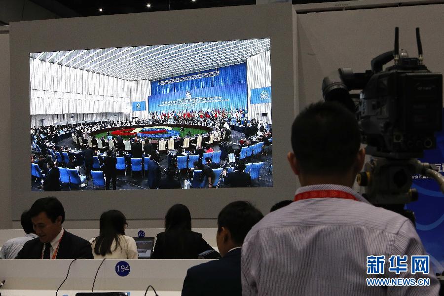 5月21日拍攝的亞信峰會(huì)新聞中心。 當(dāng)日,亞洲相互協(xié)作與信任措施會(huì)議第四次峰會(huì)在上海舉行。 新華社記者 張玉薇 攝
