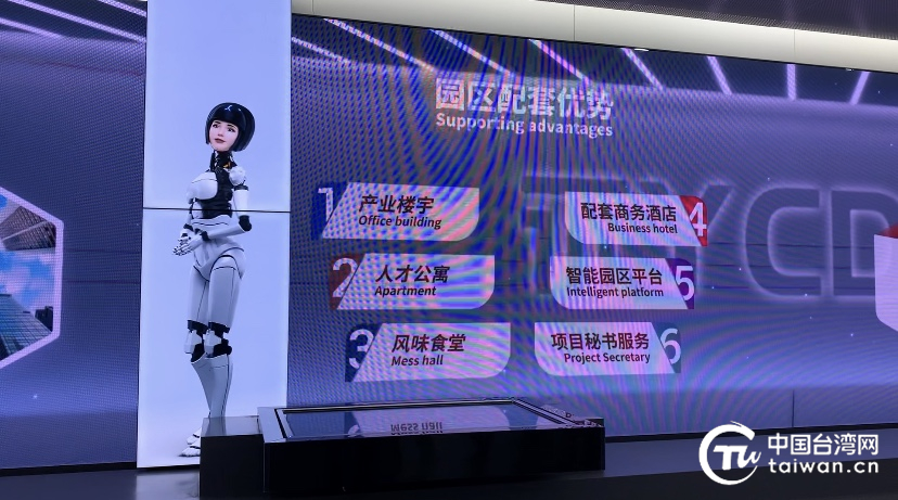 智能機(jī)器人講述園區(qū)概況。(中國(guó)臺(tái)灣網(wǎng) 王琳 攝)