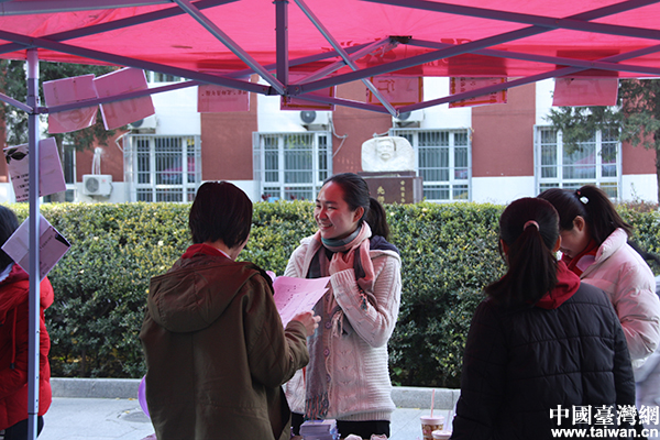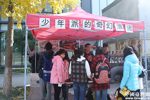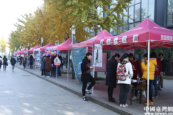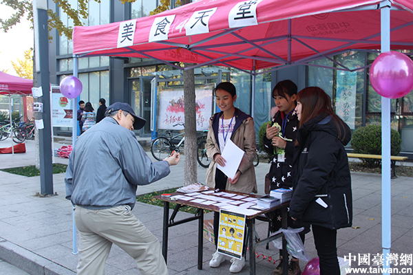 北京師范大學兩岸四地青年交流協會的學生們早早地來到體育館外布置攤位,他們為兩岸四地青年交流所做的努力,如同陽光在這個寒冷的初冬讓人感到溫暖。