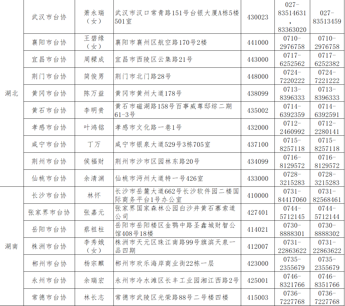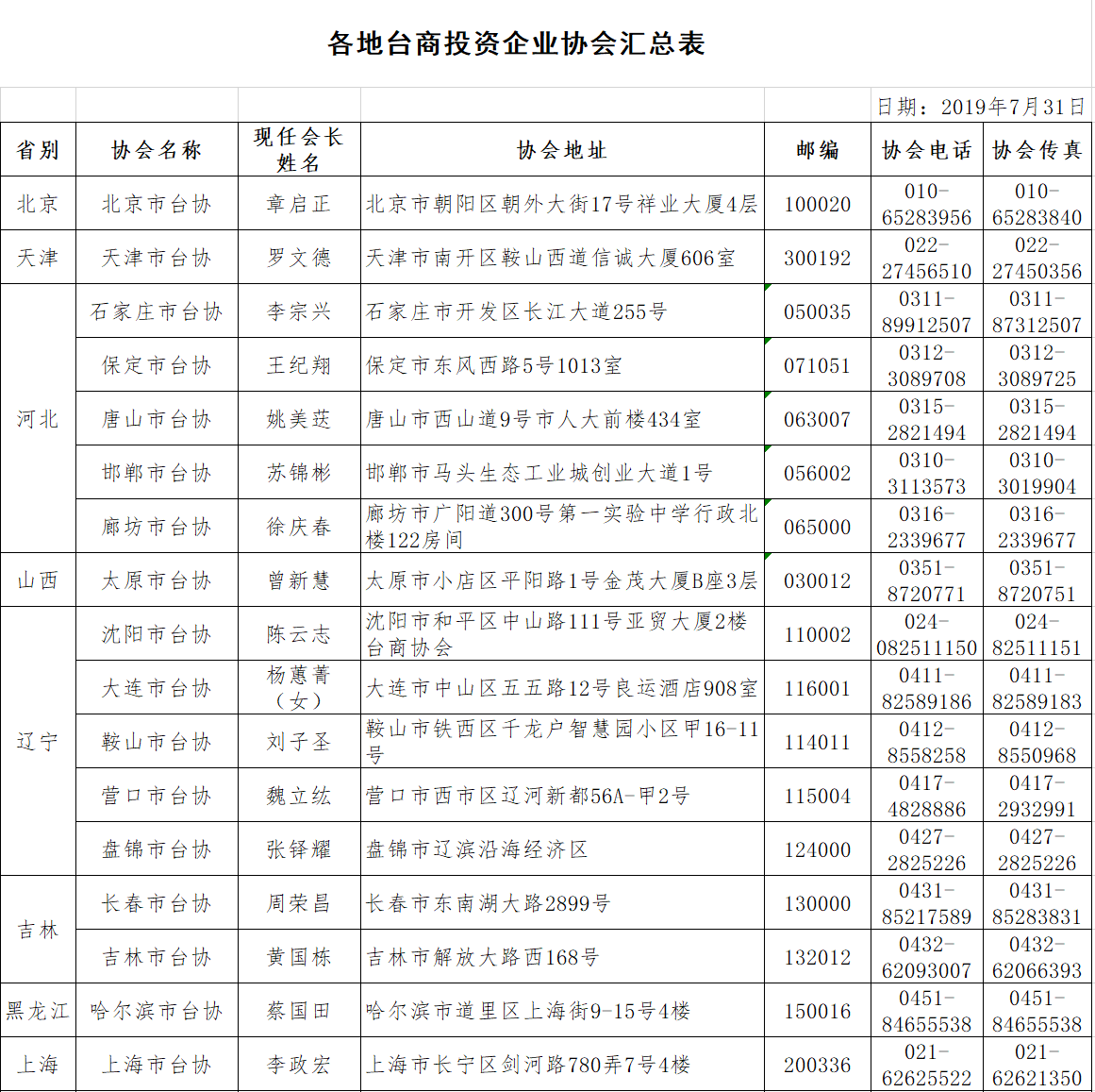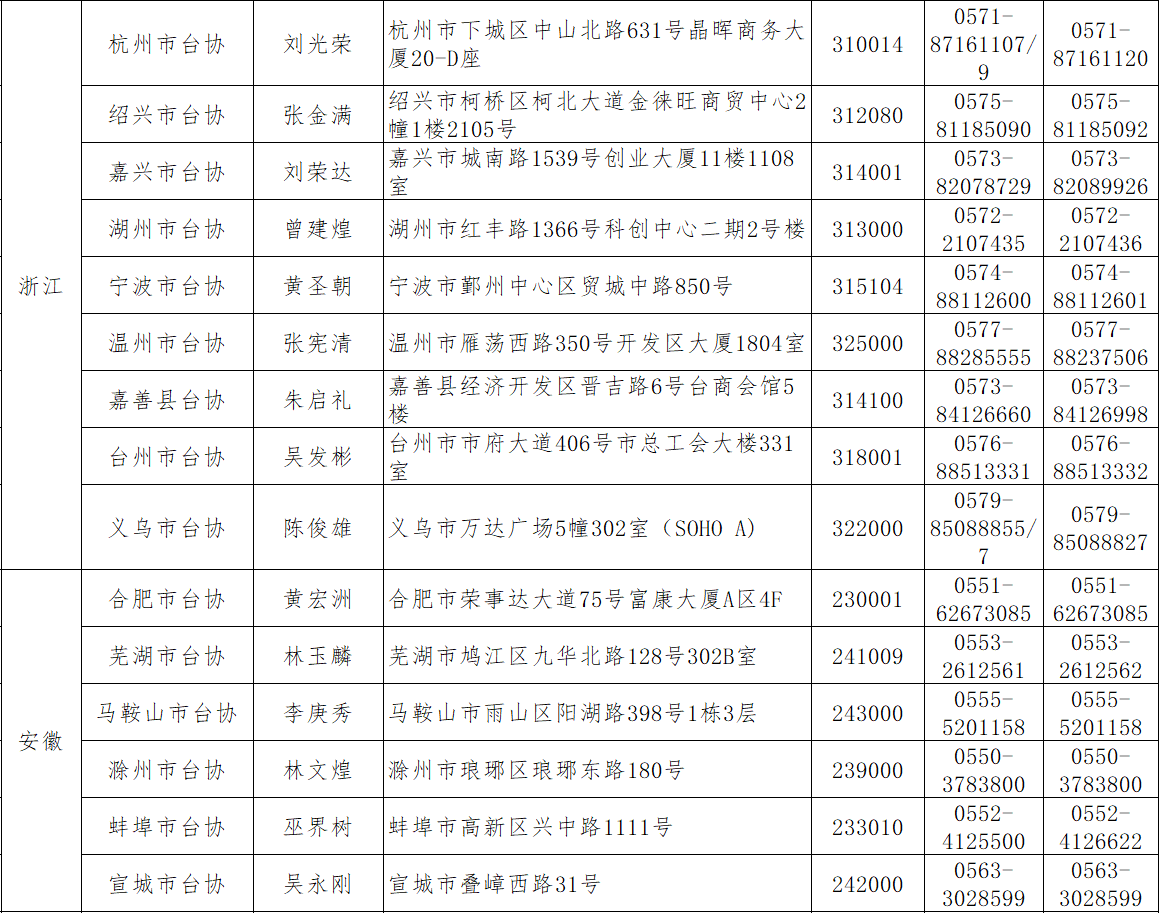 各地臺商投資協會匯總表