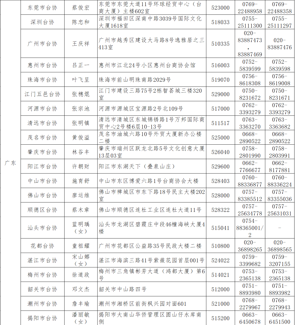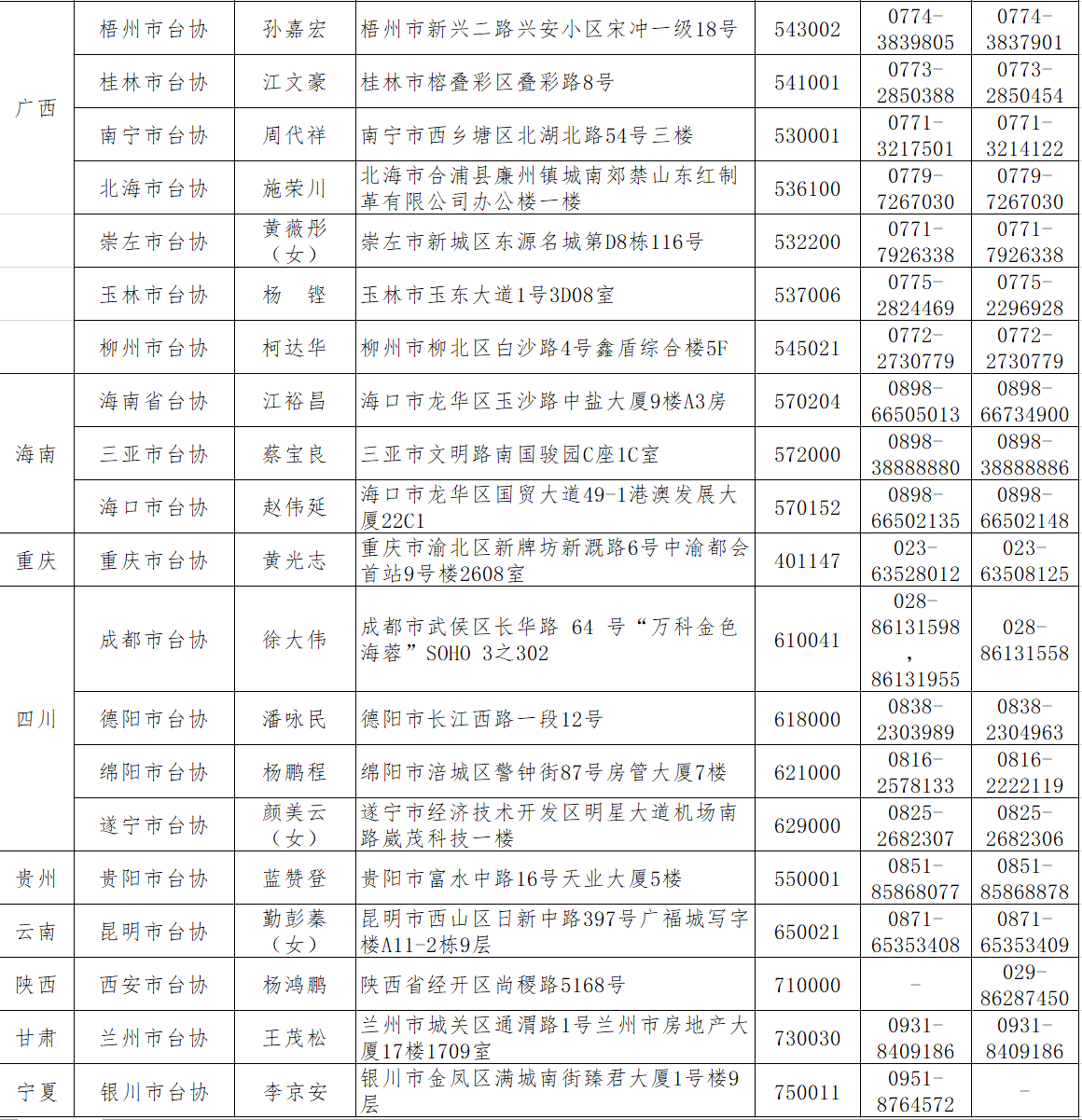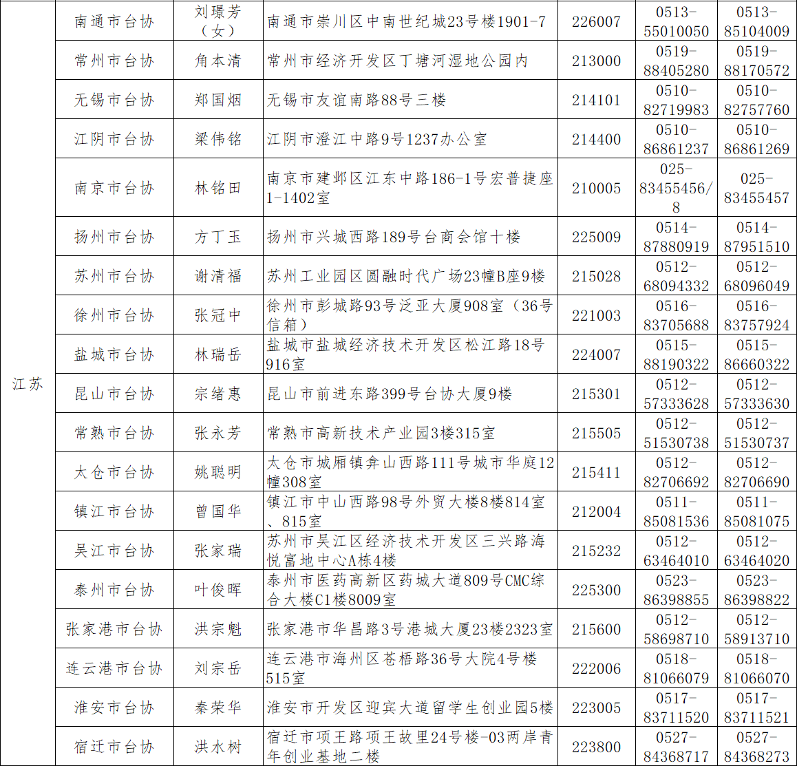各地臺商投資協會匯總表