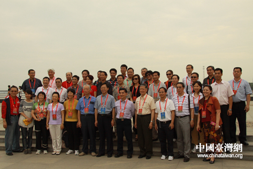 中國統促會第十次海外會長會部分與會嘉賓在佳木斯市松花江畔合影留念。(中國臺灣網 徐維彬 攝)