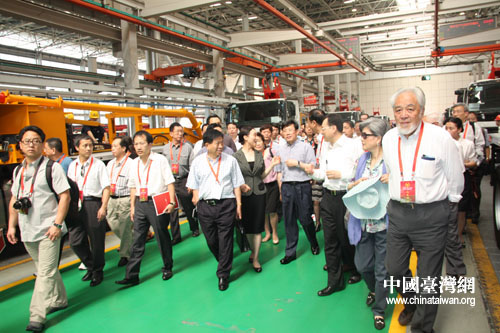 統(tǒng)促會(huì)參訪團(tuán)興致勃勃地走進(jìn)三一重工集團(tuán)的生產(chǎn)車間。(中國臺(tái)灣網(wǎng) 王君飛 攝)