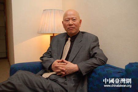 許信良以財團法人“新興民族文教基金會”董事長身份應邀出席論壇,19日晚接受了中國臺灣網的專訪。(田云鵬 攝)