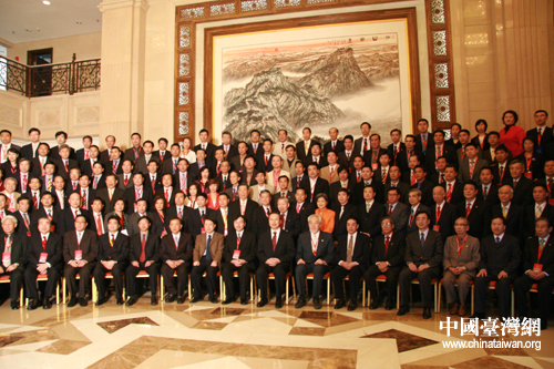 全國政協副主席、中共中央統戰部部長杜青林與參加中國和平統一促進會第七屆海外統促會會長會的全體人員合影。