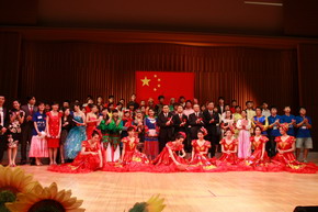 2009年9月17日,國旗、國徽、國歌,紅旗,紅花,紅彤彤的笑臉……17日傍晚,日本東京國立奧林匹克紀念青少年綜合中心因為一群中國人的到來而顯得喜慶和隆重。由全日本中國留學生學友會主辦、中國駐日本國大使館協辦的“我與祖國心連心”——在日中國留學生慶祝中華人民共和國成立60周年大型文藝晚會正在這里舉行,作為海外學子獻給祖國60華誕的禮物。