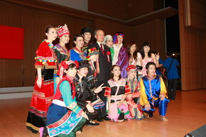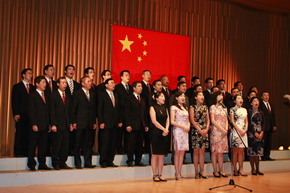 中國駐日本大使崔天凱觀看了演出,熱情地慰問了演職人員,并與他們合影。崔大使在致辭時動情地說,“我們的祖國之所以能夠一步步地走向繁榮富強,離不開一代又一代留學生的勤奮學習。‘恰同學少年,風華正茂’,國家和民族的希望寄托在你們身上。在新中國60歲生日之際,我們共和國兒女共祝祖國生日快樂。”晚會上,崔大使還帶領使館部分館員為觀眾獻上了合唱《中國,中國,鮮紅的太陽永不落》,博得了全場喝彩。