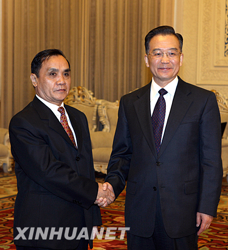 3月24日,國務(wù)院總理溫家寶在北京人民大會堂會見老撾國會主席通辛·坦馬馮。 新華社記者姚大偉攝