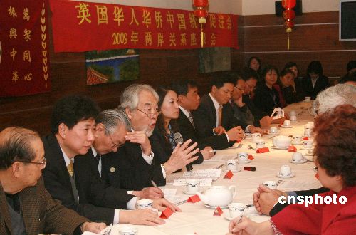 當(dāng)?shù)貢r間1月12日下午,全英華人華僑中國統(tǒng)一促進(jìn)會在倫敦召開兩岸關(guān)系發(fā)展現(xiàn)狀座談會,五十多名華人華僑代表出席。與會者認(rèn)為,胡錦濤最新的對臺講話展現(xiàn)了新思維,具有政治家的洞察遠(yuǎn)見。圖為全英華人華僑中國統(tǒng)一促進(jìn)會會長單聲(左四)在發(fā)言。中新社發(fā) 李鵬 攝