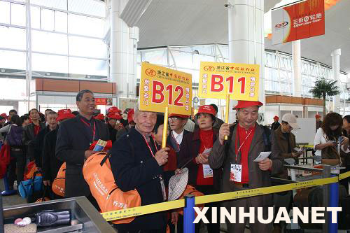 3月14日,首個近千人大陸赴臺旅游團取道廈門――金門的小三通航線赴臺觀光旅游,游客們正準備通關。2009年“相聚金門、情游臺灣”千人赴臺游首發團由952人組成,其中80%是來自浙江義烏的中老年人,該團在浙江杭州乘坐專列于3月13日抵達廈門。旅游團在臺灣停留時間為5天4夜,將分別游覽臺北、高雄、嘉義、臺中、新竹等地區。新華社記者 項開來 攝