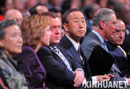 12月15日,在丹麥?zhǔn)锥几绫竟?lián)合國(guó)秘書長(zhǎng)潘基文(右三)、丹麥?zhǔn)紫嗬鼓律ㄓ宜模⒂?guó)王儲(chǔ)查爾斯王子(右二)等出席聯(lián)合國(guó)氣候變化大會(huì)高層會(huì)議開(kāi)幕式。當(dāng)天,氣候變化大會(huì)開(kāi)始進(jìn)入高層會(huì)議階段。新華社記者武巍攝