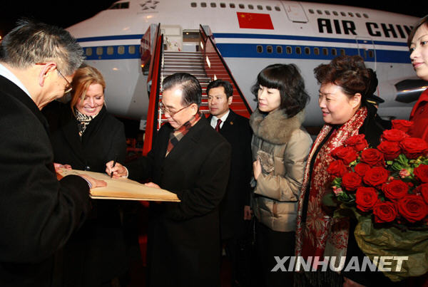 12月16日,中國(guó)國(guó)務(wù)院總理溫家寶抵達(dá)丹麥?zhǔn)锥几绫竟鱿绫竟鶜夂蜃兓瘯?huì)議。這是溫家寶抵達(dá)后在貴賓簽名簿上簽名。新華社記者龐興雷攝