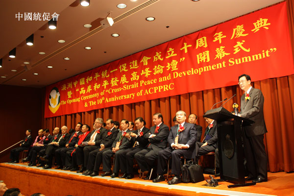 中國統促會執行副秘書長李路在出席澳洲中國和平統一促進會成立十周年慶典暨“兩岸和平發展高峰論壇”開幕式上致辭