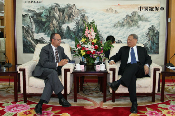 8月23日,第九、十屆全國人大常委會副委員長、中國和平統(tǒng)一促進(jìn)會名譽(yù)會長成思危在京會見了由葡萄牙中國和平統(tǒng)一促進(jìn)會會長、葡萄牙國會議員及企業(yè)界友好人士組成的訪問團(tuán)一行。中國和平統(tǒng)一促進(jìn)會執(zhí)行副秘書長李路、副秘書長傅鐵生及部分理事參加了會見。