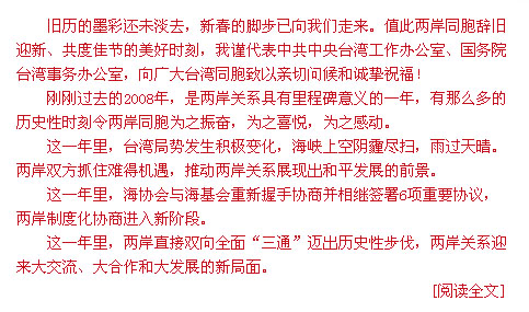 [新華網]王毅發新春賀辭:兩岸共同譜寫和平發展新篇章