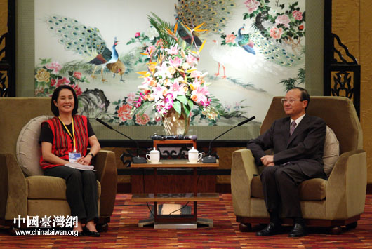 8月20日下午,國家旅游局局長、海峽兩岸旅游交流協會會長邵琪偉會見臺灣少數民族代表團團長高金素梅一行。(中國臺灣網 鐘寶華 攝)