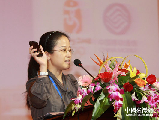中國(guó)移動(dòng)數(shù)據(jù)部個(gè)人產(chǎn)品中心副主任胡怡在主題論壇上發(fā)言(中國(guó)臺(tái)灣網(wǎng) 鐘寶華 攝)