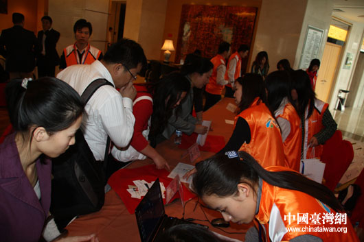 出席本屆論壇的嘉賓辦理簽到手續。(圖為中國臺灣網 發)