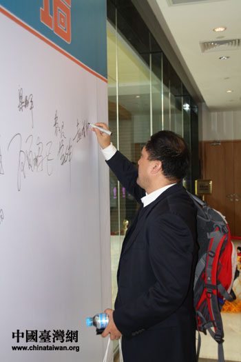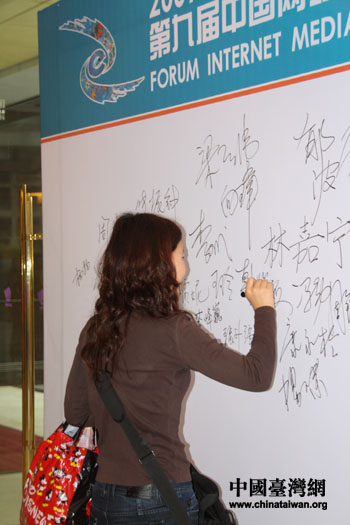 出席本屆論壇的嘉賓在簽名墻上簽名。(中國臺灣網 發)