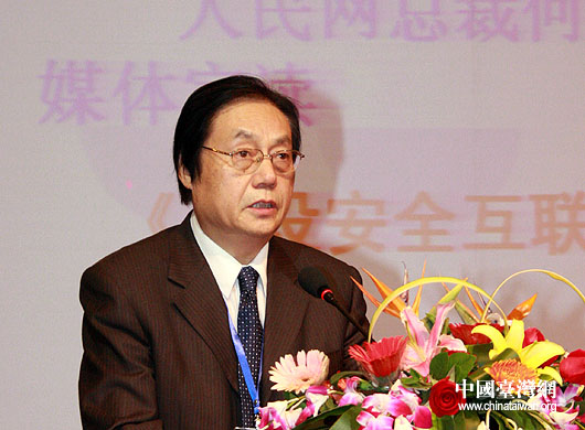 11月24日晚,人民網總裁何加正在第九屆中國網絡媒體論壇閉幕式上宣讀《建設安全互聯網宣言》。(中國臺灣網 鐘寶華 攝)