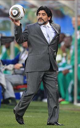馬拉多納非常少見地身穿正裝出席比賽。熟悉馬拉多納的人知道,這位狂放不羈的足球天才更喜歡身穿運動服。但是,時間飛逝,馬拉多納已經(jīng)接受了新的角色——阿根廷國家隊的主教練。馬拉多納以這樣一種從未有過的方式向全世界宣告:世界杯,馬拉多納回來了!